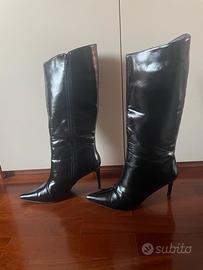 Stivali alti neri in finta pelle di alta qualità, lucidi e super femminili