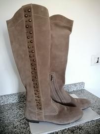 Bellissimi stivali, scamosciati con borchie, usati pochissimo, come nuovi. Marca Nero Giardino. Marrone. Con borchie laterali e piccola cerniera. Sotto il ginocchio. Numero 39