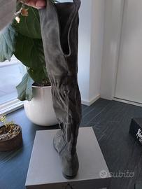 Stivali alti scamosciati grigi Numero 39 Si possono portare alti sopra il ginocchio o risvoltati sotto il ginocchio Suola in gomma Made in Italy