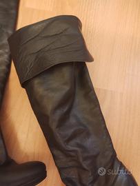Stivali sopra il ginocchio realizzati in Vera Pelle..tacco 9 con plateau..Sono in ottime condizioni e presentano un aspetto elegante e raffinato,si possono abbassare sotto il ginocchio per un aspetto più sportivo
