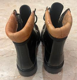 Vendo bellissimi stivaletti neri lucidi, modello anfibio, con interno in pelle stampa mappa geografica tipica di Alviero Martini Prima Classe.