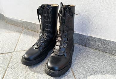 Stivali anfibi in cuoio lucido nero, modello Polizia, n.39, con lacci e cerniera, vendo con scatola.