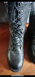 Stivali anfibi in pelle nera con suola in gomma rialzata, lacci frontali e cerniera laterale