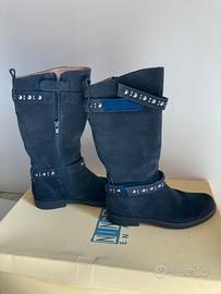 Stivali bambina in pelle di camoscio colore blu, marca Ninette, misura 31, usati poco come Nuovi.