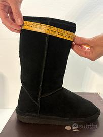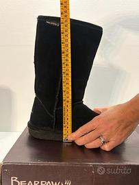 Stivali bassi Bearpaw, neri tipo Hugg, con pelo intern e camoscio esterno, Numero 35 anche se la scatola indica 36, usati una volta praticamente nuovi vedi foto suola. Un vero