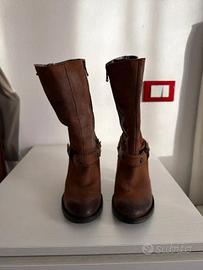 Vendo stivali in cuoio usati pochissimo. Lunghezza mezzo polpaccio. Altezza tacco 9cm. Il gambale può essere stretto (vedi foto)