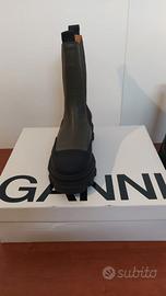 Ganni Chelsea boots in pelle e gomma. Colore verde militare. Taglia EU 40 nuovi. Platform height: 3cm Heel Height: 5cm Boot length: 21cm Retail price € 400