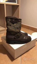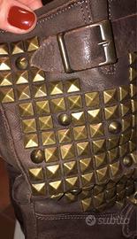 Stivale biker con interno caldo tessuto, in pelle martoni con borchie bronzo. Numero 37/38. Calza comodo.