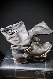 Stivali in vera pelle comodissimi e regolabili in larghezza, vestono circa mezza taglia in più. Presente in altri siti.