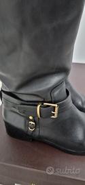 Stivali biker Il Laccio vera pelle numero 37, colore nero con fibbie oro