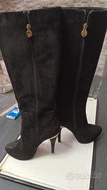 Stivali in microfibra effetto scamosciato, colore nero, nr 39, tacco 12 cm, usati una sola volta.
