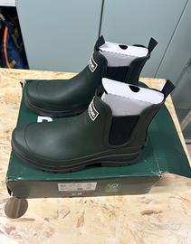 Vendo stivaletti Barbour in gomma verdi antipioggia,quelli in foto,da uomo taglia 42,vestono comodi,nuovi mai usati.