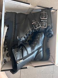 Stivali Buffalo neri con platform chunky e dettagli con fibbie metalliche 🖤 ✨ Stile grunge/alt ✨ Platform alta ma comodi ✨ Chiusura con zip laterale + lacci Condizione: in ottimo stato, usati pochissimo (vedi foto) ✨ Con scatola originale inclusa