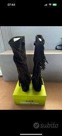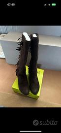 Splendidi stivali in vera pelle scamosciata colore testa di moro n37 Li stivale arriva sotto al ginocchio Mai srati indossati Nuovi