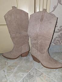 vendo stivali camperos scamosciati beige altezza quasi al ginocchio altezza tacco 6cm nuovo