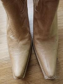 Originale Stivale Western o Camperos made in Colombia, vero cuoio scamosciato, lavorati artigianalmente color cuoio naturale con gambale. taglia 39 o lunghezza del piede 25/26cm