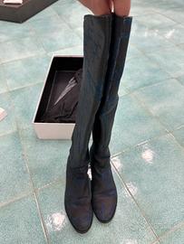 Stivali alti con un elegante motivo logato. - Motivo logato GF blu su fondo nero. - Zip laterale per una facile calzata.