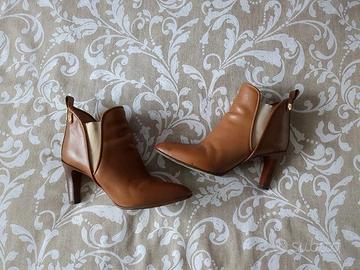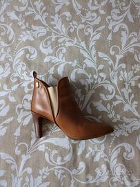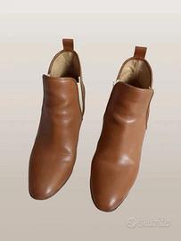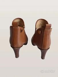 Stivaletti Chloé originali in pelle color cuoio/caramello. Taglia 38 EU. Linea elegante con punta affusolata e tacco medio, comodissimi e facili da abbinare sia a look casual che più chic. Presentano normali segni di utilizzo (come da foto), ma sono ancora in buone condizioni e strutturalmente perfetti.