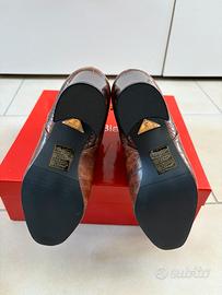 Stivali in pelle come da foto, mai usati con scatola ed erichette originali. Colore marrone e cerniere oro, finitura similpelle ad effetto coccodrillo. Numero 36.
