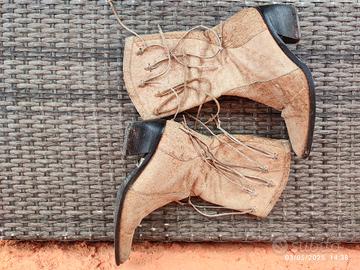 vendo stivali a punta con frange in pelle e zip laterale. Colore beige. Usati pochissimo e in buono stato.