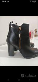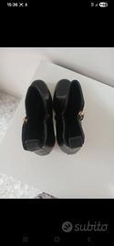 stivali con tacco e plateau avanti in pelle indossati pochissime volte