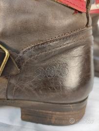 Stivali in Vera pelle da biker unisex con un design unico, modello Police 883. - Taglia 40 in ottime condizioni. - Dettagli a tema bandiera americana. - Inserti in pelle rossa e bianca. - Borchie decorative. - Fibbie regolabili.