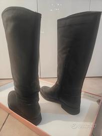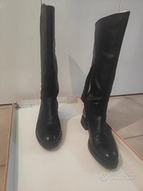 Eleganti stivali alti in pelle. Modello al ginocchio Dettaglio con zip laterale