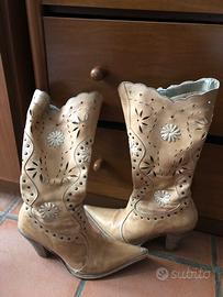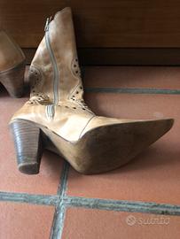 Stivale da donna forati in vera pelle, colore cammello numero 36. Tacco alto 9cm