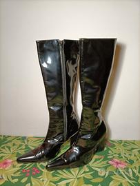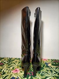 Stivali da donna in pelle nera lucida e tacco squadrato