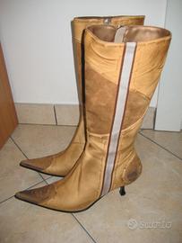 Vendo: Stivali da donna in vera pelle di colore beige e camoscio marrone realizzati interamente a mano di alta fattura, molto particolari e originali, marca Fausta Moretti. Made in Italy, misura 38, tacco cm 7, comodi e morbidi, pari al nuovo con scatola con scatola. Euro 30