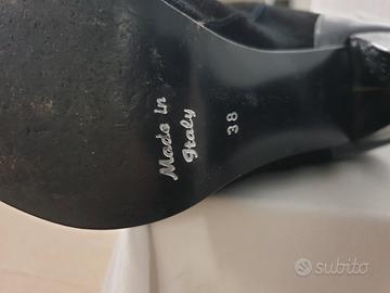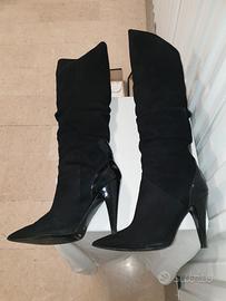 CINTI - Stivali da donna scamosciati neri con tacco alto ed inserto nero lucido. Tacco alto. Nr. 38. Gambale morbido. Altezza totale 50 cm.