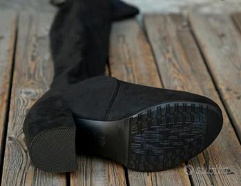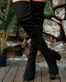 Coppia di Stivali da Donna Sopra il Ginocchio con Tacco e punta larga, quindi molto comodi. Chiusura a Infilare, Gamba Affusolata, Suola in Gomma Spessa e Microfibra - Stivali Invernali Neri per Feste, Abbigliamento Casual adatti a Pantaloni sportivi ed eleganti e per Tutte le Stagioni.