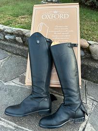 Stivali da equitazione Oxford in pelle di vitello bottalato nero Made in Italy.