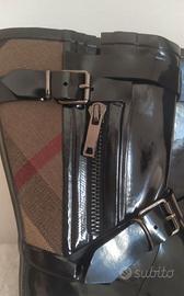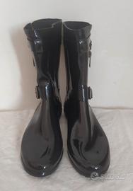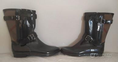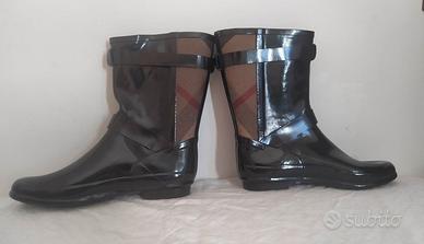 Stivali da pioggia in gomma nera lucida Burberry. Originali !!!! Taglia 39 It. Tessuto tartan classico del marchio, 2 fibbie con marchio e cerniera con marchio. Nuovi senza scatola. Mai usati neanche per provarli. RRP 360 Euro.