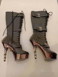 Un paio di stivali da donna marca DEMONIA tg. 38 borchiato e tacco scultura cm 12, colore nero, Mai indossati.