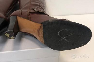 Stivali donna in pelle marrone BLUMARINE , taglia 37 1/2, tacco 10cm, usati molto poco, praticamente come NUOVI (vedere foto delle suole). Scatola NON originale disponibile. Possibile spedizione al costo di 12 euro. Per provarle senza impegno in struttura adeguata scrivetemi. Vigonza - Padova.