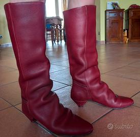 Stivali bordeaux n.37 lavorazione artigianale Made in Italy, in pelle morbida, al polpaccio circonferenza 39.