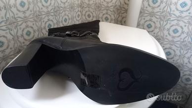 Stivali neri donna n. 40 con tacco robusto, firmati Solo Soprani, condizioni buone, gamba in tessuto, tomaia e finiture in ecopelle nera, mai indossati, suola nuova in gomma, impermeabili. Con scatola originale, vendo € 25. Segnalo che, lasciandoli a lungo in scatola, la pelle interna si è screpolata.
