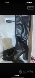 Vendo stivali da donna in pelle di vitello nera, eleganti e versatili. Taglia 40.