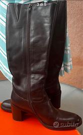 Stivali alti al ginocchio in vera pelle colore testa di moro con cerniera laterale firmati Pakerson Taglia 38 altezza tacco cm 7