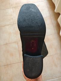 Stivali donna in vera pelle nera, lavorazione artigiana, 41. Altezza tacco cm 3,5. Lunghezza suola cm 29,5. Altezza gamba tacco incluso cm 40.