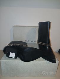 Tronchetto texano semplice ma originale in pelle 100%, colore nero, con borchie risvolto by Elana Iachi.