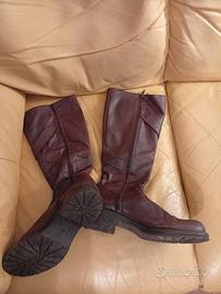 Stivali in pelle marrone da donna, suole di gomma, misura piede n°40, interno gambale elastico, altezza totale 40 cm. in buono stato.