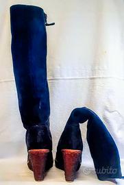 Deliziosi stivali donna in camoscio blu oceano tacco unito in para comodissimi. n. 37 usati pochissimo