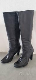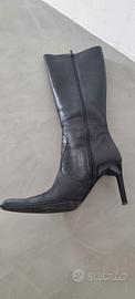 Vendesi 2 paia di stivali donna neri in pelle, non separatamente, a 30 euro tutti e due insieme, uno (quello con il tacco grosso) è rovinato in punta, l'altro è perfetto, usati pochissimo, taglia 39
