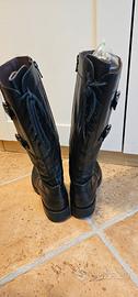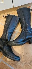 Stivali donna neri di pelle Nero Giardini n37. Con lacci posteriori e fibbie estetiche laterali. Suolo in buona stato e anche soletta interna. Usato poche volte