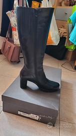 Questi stivali stupendi sono in pelle nera e sono veramente un guanto, comodissimi. Arrivano al ginocchio. Sono stati usati pochissimo a causa del numero sbagliato, per questo motivo non hanno difetti, sono come nuovi.