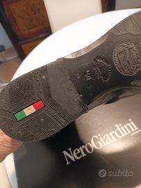 stivali donna in pelle a ginocchio suola in gomma con cerniera di lato e piccolo laccio dietro per stringere oppure allargare portate pochissimo marca Nero Giardini