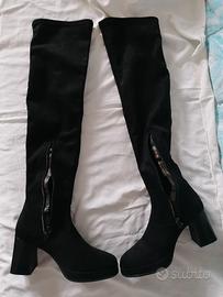 Vendo stivali alti scamosciati ed elasticizzati n. 37 con cerniera parziale sul lato interno della gamba per favorire la calzata.