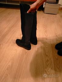 stivali donna n. 37 Stelio Malori di pelle scamosciata nera, il retro gamba e' tessuto elasticizzato. Altezza gamba davanti cm 40, retro altezza cm 34